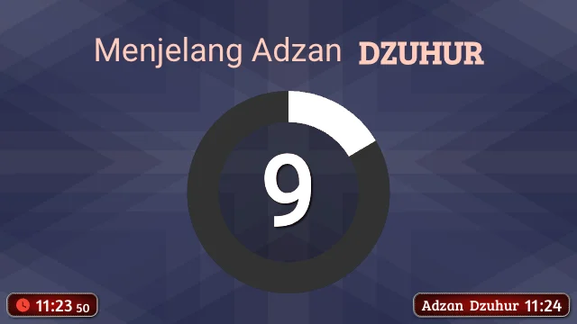 Akan ditampilkan menjelang waktu adhan, beberapa detik sebelum masuk waktu sholat.