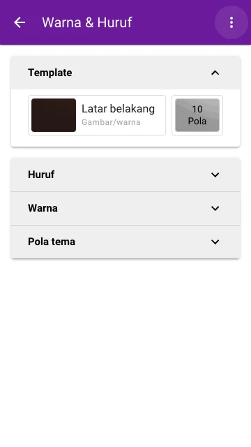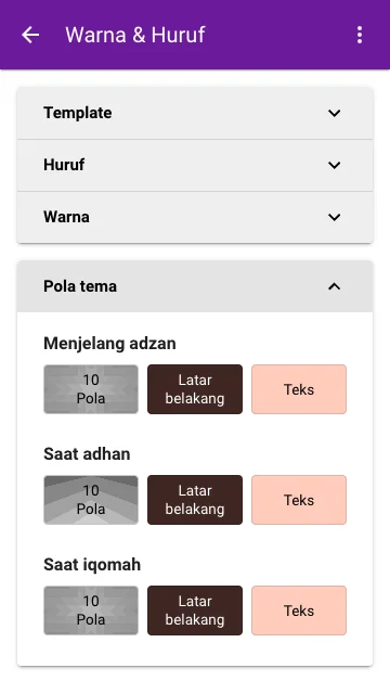 Pengaturan warna untuk latar belakang, warna teks, model pola latar belakang, serta jenis huruf untuk sebagian besar item yang bisa dikustom ada di bagian ini.