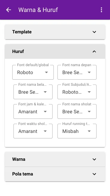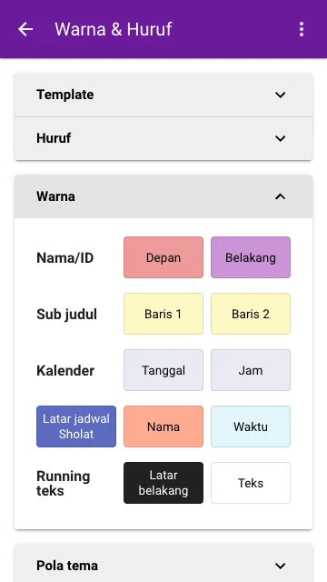 Misalnya: Untuk running teks, identitas, nama waktu sholat dan jam sholat, dan lain sebagainya.